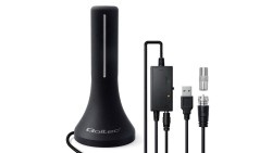Qoltec Wewnętrzna mocna Antena TV DVB-T/T2 wzmacniacz sygnału 4K wysoki zysk 32dBi 360º Kabel 4m