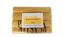Worki na śmieci żółte 120l do segregacji odpadów nadruk Tworzywa Sztuczne op. 100szt.