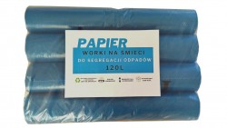 Worki na śmieci niebieskie 120l do segregacji odpadów nadruk Papier op. 100szt.
