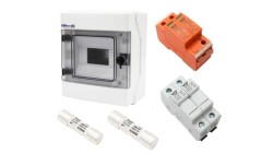 Rozdzielnica hermetyczna PV zestaw fotowoltaiczny 1 string 2P DC 1000V VCX ogranicznik przepięc + wkładki 10x38 15A 1000V DC PV