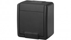 Gniazdo zasilające pojedyncze natynkowe hermetyczne IP55 antracytowe z klapką 2P+Z 16A Aquant 2K