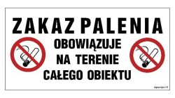 NC129 Zakaz palenia obowiązuje na terenie całego obiektu 40 x 20 cm PN - Płyta 1mm