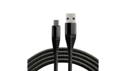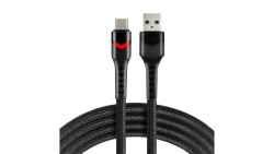 Kabel przewód pleciony USB - USB-C / Typ-C LCD everActive CBB-2CBL 200cm z obsługą szybkiego ładowania do 3A czarny