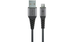 Kabel tekstylny Micro USB na USB-A z metalowymi wtyczkami ( szary / srebrny) 1 m - Długość kabla 1 m