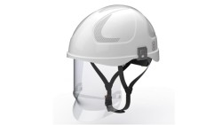 Hubix Biały hełm elektroizolacyjny z osłoną twarzy (ruchomą) W1 klasy 1 Box-test, do 20 kV AC / 1,5 kV DC SECRA H058S