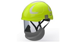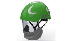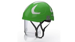 Hubix zielony hełm elektroizolacyjny z osłoną twarzy (ruchomą) W1 klasy 1 Box-test, do 20 kV AC / 1,5 kV DC SECRA H058S
