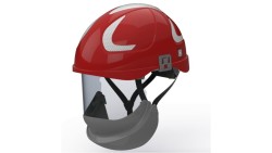 Hubix czerwony hełm elektroizolacyjny z osłoną twarzy (ruchomą) W1 klasy 1 Box-test, do 20 kV AC / 1,5 kV DC SECRA H058S