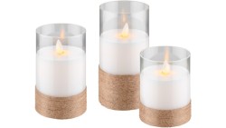 Zestaw 3 świec LED z prawdziwego wosku w szklance, białe
