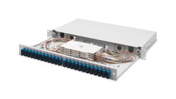Panel krosowy FO z wyposażeniem 19 1U, 24x LC dx, OM3, pigtaile, adaptery, tacki, wysuwany, szary DN-96332/3