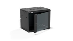 Szafa rack wisząca 19 cali 9U 600x450, drzwi szklane, tył i osłony boczne demontowalne, ZŁOŻONA kolor czarny ALANTEC