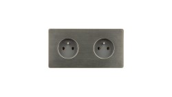Gniazdko elektryczne szare podwójne ramka stal szczotkowana PVD Gunmetal GN-SNPG02S
