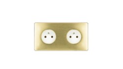 Gniazdko elektryczne białe podwójne ramka stal szczotkowana PVD Brass GN-SNPBR02B