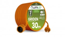 Przedłużacz Ogrodowy Kabel Budowlany Pojedynczy 1 Gniazdo 30m Pomarańczowy Sznur GRIDEN Lumiled