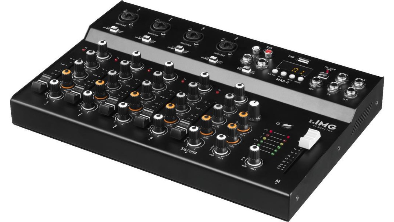 6-kanałowy mikser audio z wbudowanym urządzeniem efektowym DSP, odtwarzaczem MP3 oraz odbiornikiem Bluetooth MXR-6