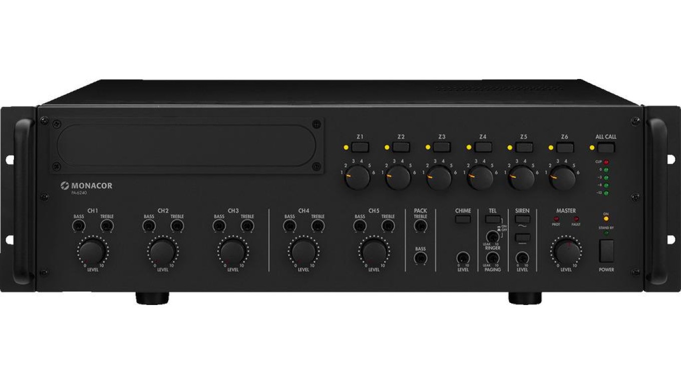 6-strefowy wzmacniacz miksujący PA, mono 240WRMS PA-6240