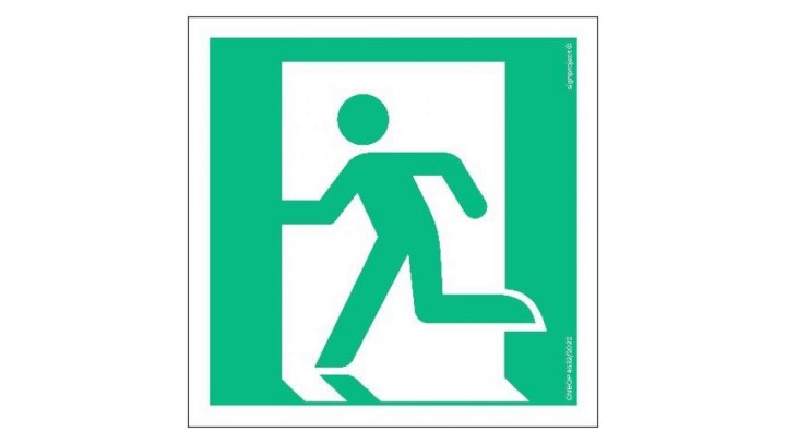 AE001 Wyjście ewakuacyjne lewostronne 35 x 35 cm FS - Folia samoprzylepna foto.