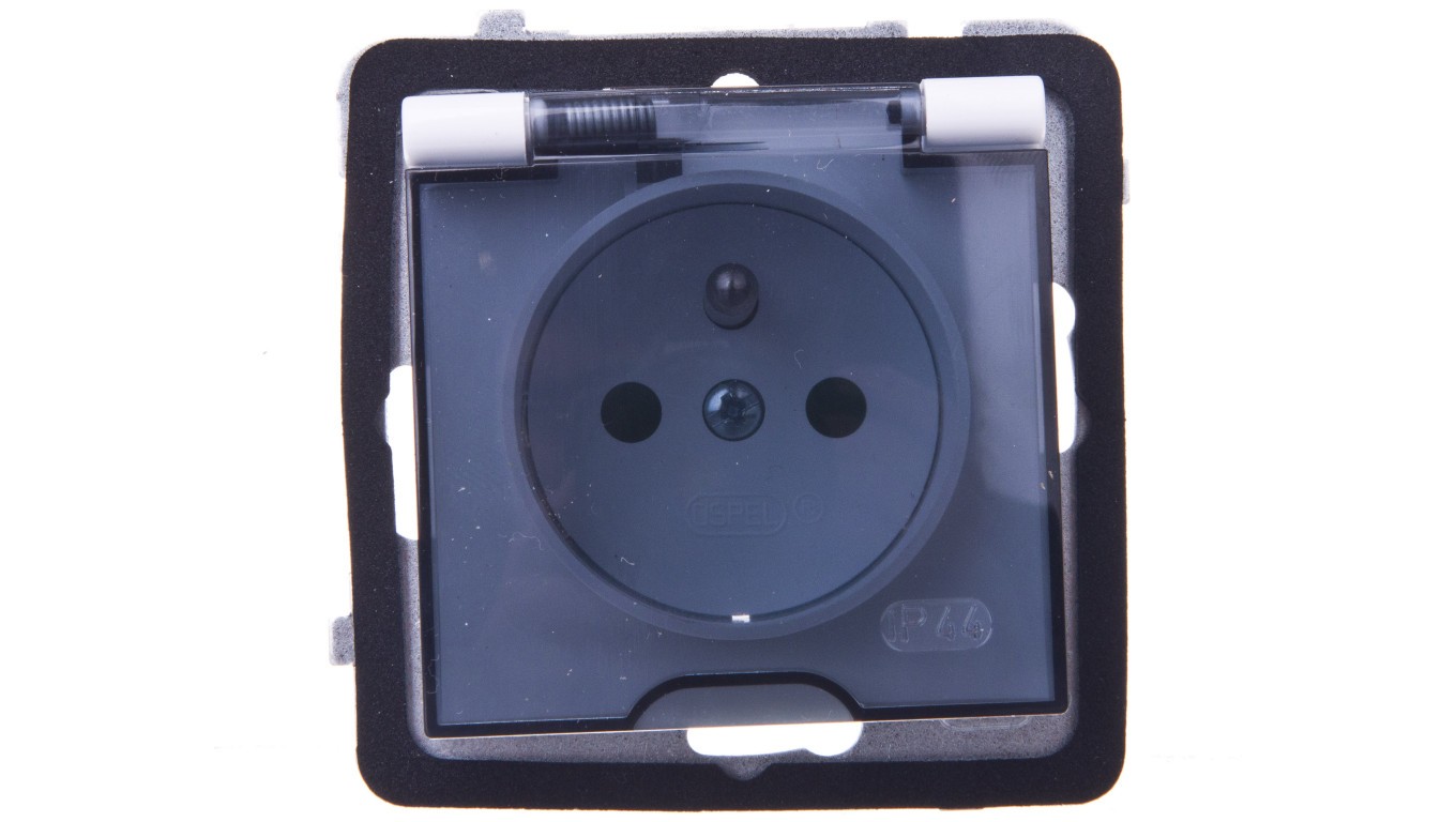 AS Gniazdo bryzgoszczelne z/u IP44 z przesłonami klapka przezroczysta białe GPH-1GZP/m/00/d