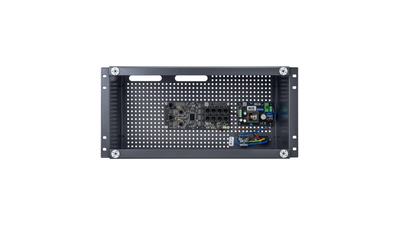 Obudowa BCS-RACK5U, Materiał obudowy KORPUS - blacha stalowa 0,8 mm malowana na kolor, Materiał obudowy POKRYWA - blacha aluminiowa 2 mm malowana na kolor grafitowy (RAL 7024), Systemowe otworowanie 4,8 mm w rastrze 10,8 mm