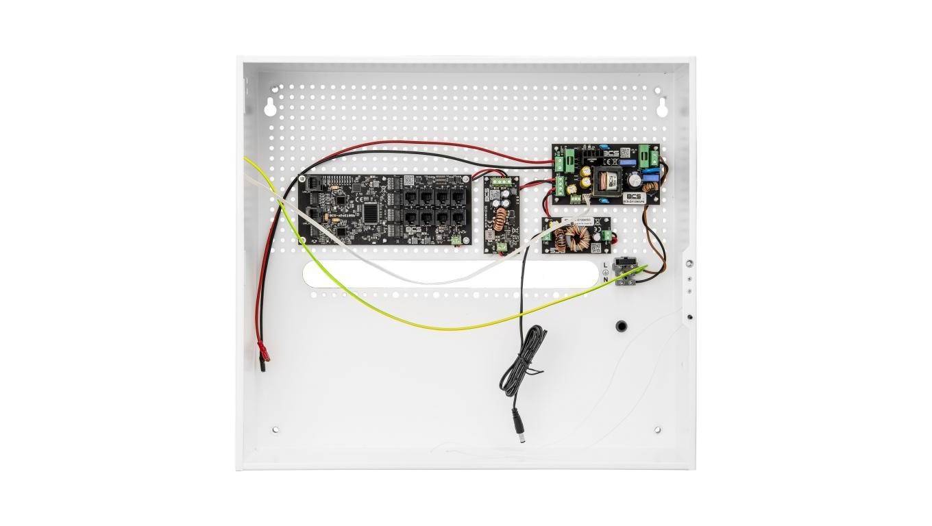 Obudowa BCS-H, Materiał obudowy - blacha stalowa 0,8 mm, Obudowa malowana proszkowo na kolor biały, Zamontowany tamper otwarcia, Systemowe otworowanie 4,8 mm w rastrze 10,8 mm, Dystans do ściany, Otwory montażowe 6 mm