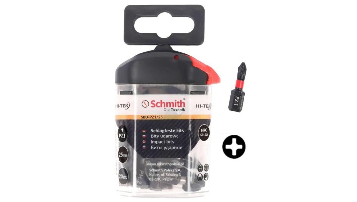 Bity udarowe PZ1 25mm 20szt zestaw BIT krzyżowy - Schmith