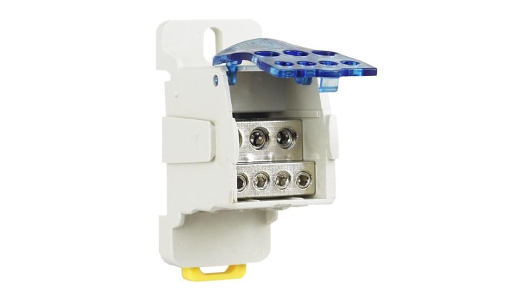 Blok rozdzielczy główny (max. 16mm2) 80A na szynę TH35 niebieski ADELID