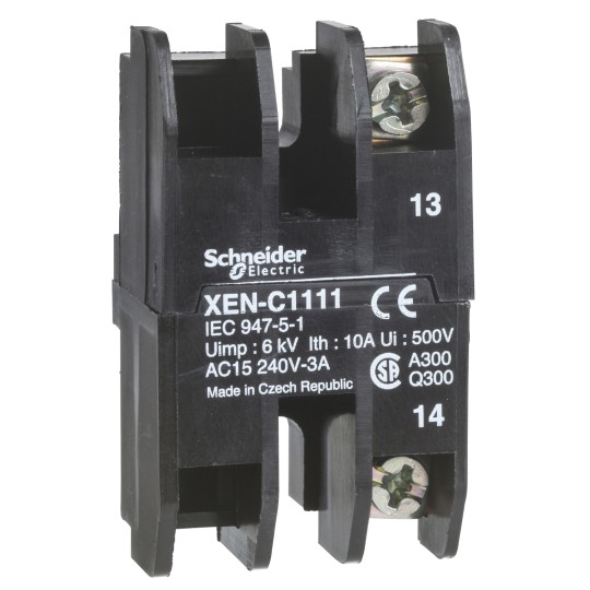Blok styków z sam. powr., 2 NO, montaż czoł., 30 lub 40mm rozstawu XENC1131