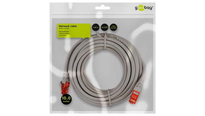 CAT 6Kabel łączący, U/UTP, Szary - Długość kabla 10 m