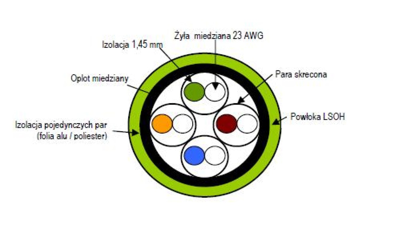 Corning (3M) Kabel S/FTP, kat.7, LS0H, CPR Dca, Zielony, bęben 1000m