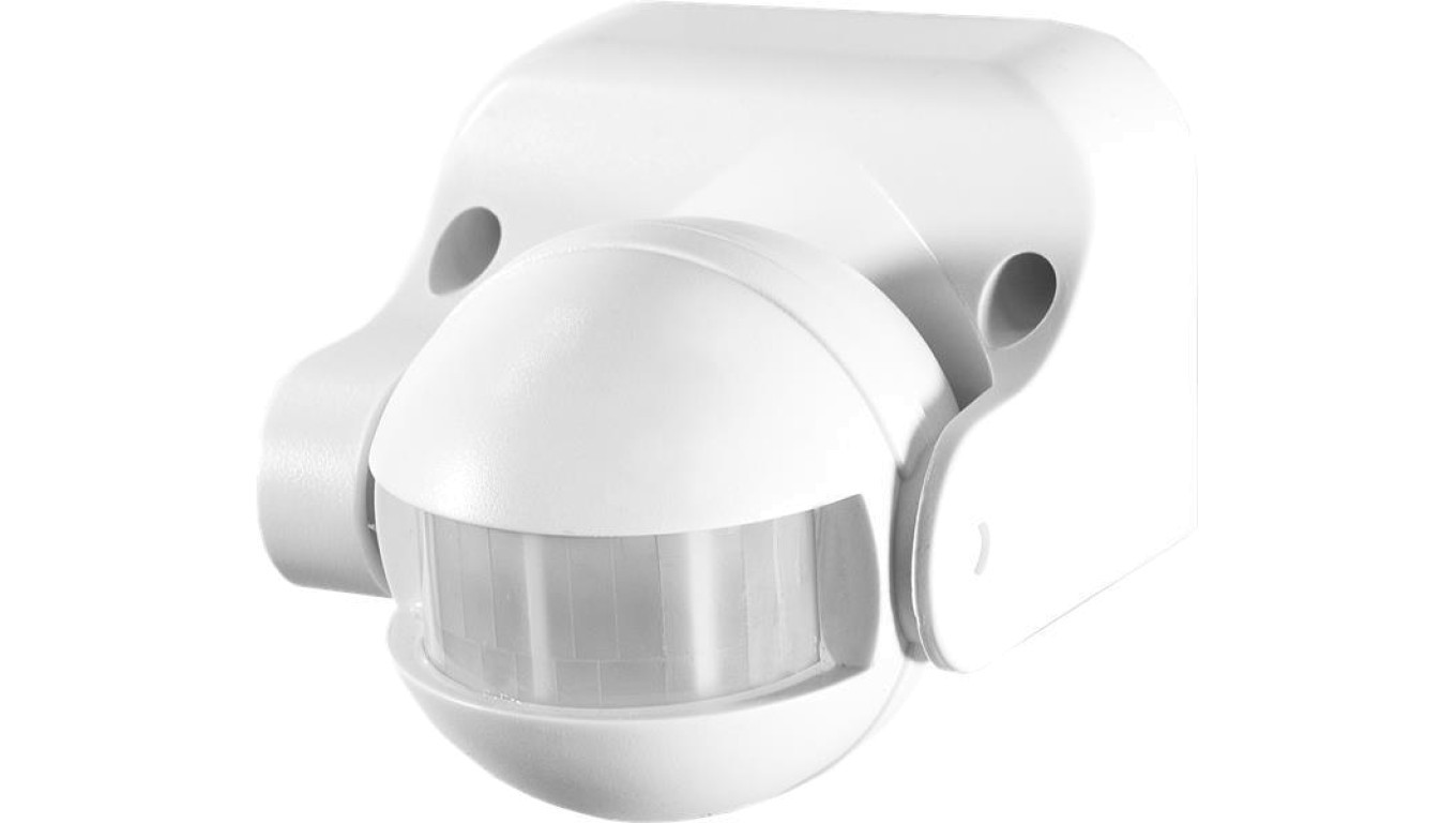 Czujnik ruchu PIR, 180, 1200W, IP44, regulacja w pionie, natynkowy, biały