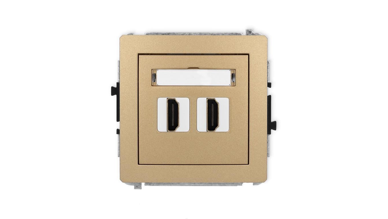 DECO Mechanizm gniazda podwójnego HDMI 2.1, 8K złoty metalik 8DHDMI-6