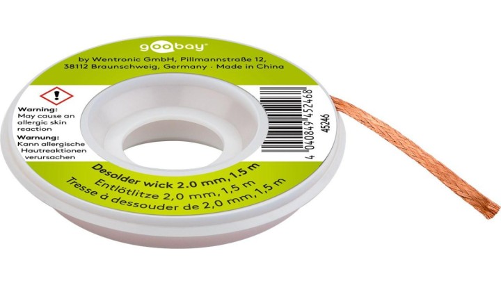 Drut do odlutowywania 2 mm do usuwania lutu z połączeń lutowanych 1,5 m