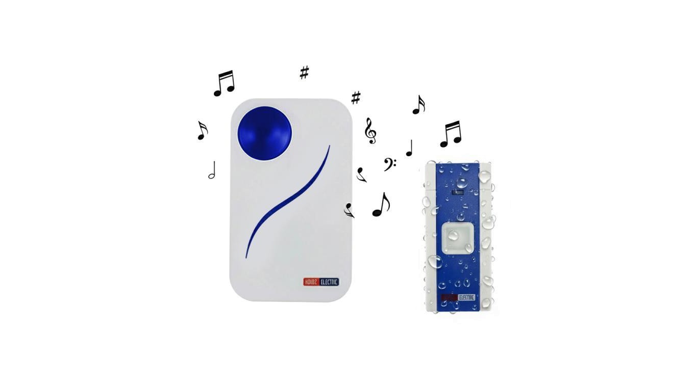 Dzwonek bezprzewodowy, 36 dźwięków, zasięg 100m, zasilanie bateryjne 2xAA 1,5V, niebieski HOROZ