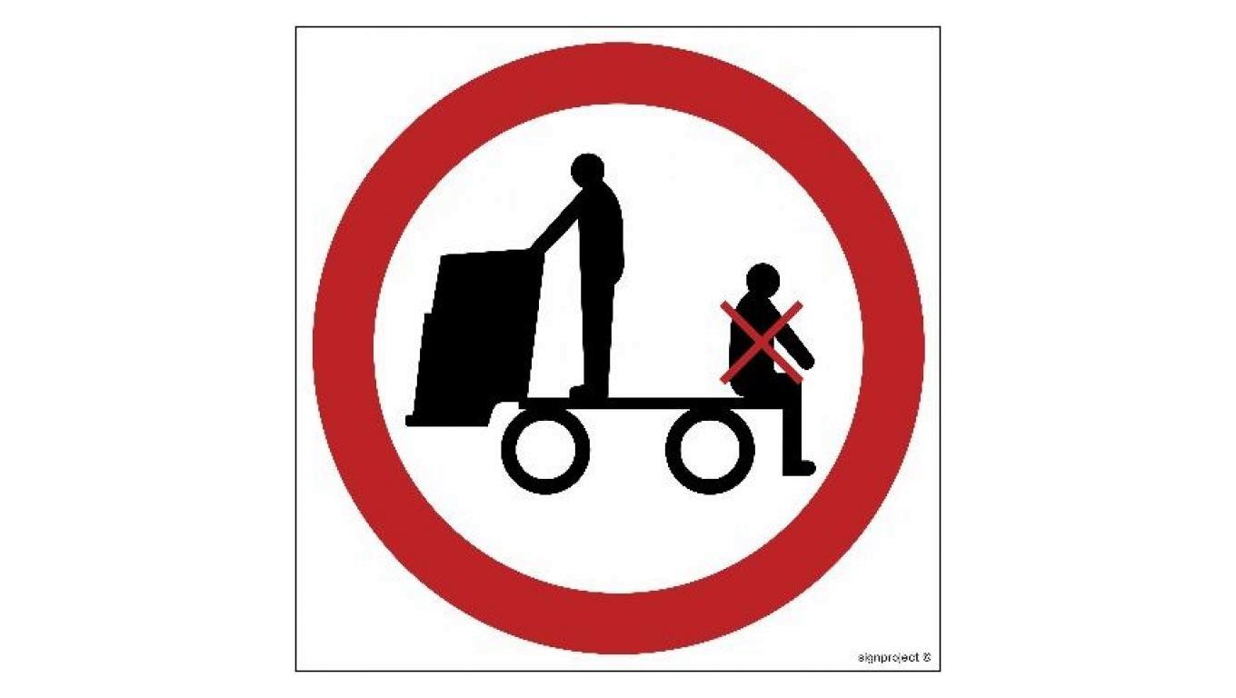 GB028 Zakaz jazdy na urządzeniach transportowych 25 x 25 cm FS - Folia samoprzylepna foto.