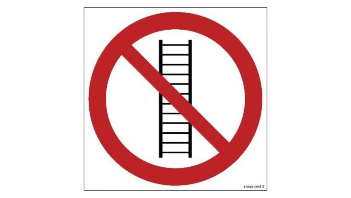 GB054 Zakaz używania drabiny 15 x 15 cm KS - Folia podłogowa foto.