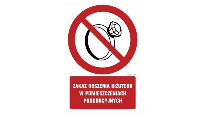 GC038 Zakaz noszenia biżuterii w pomieszczeniach produkcyjnych 10 x 15 cm FN - Folia samoprzylepna