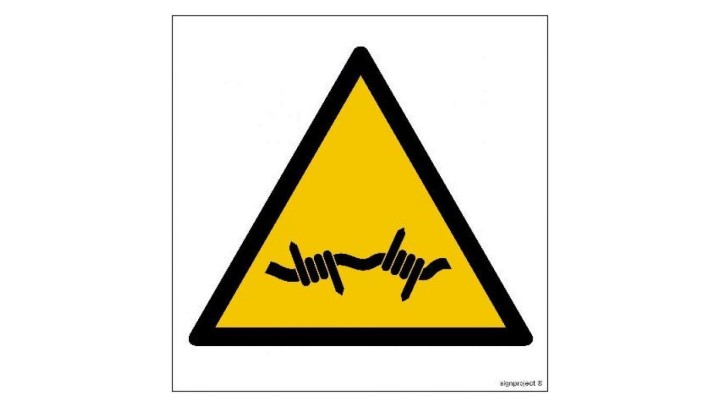 GD033 Ostrzeżenie przed drutem kolczastym 15 x 15 cm FN - Folia samoprzylepna
