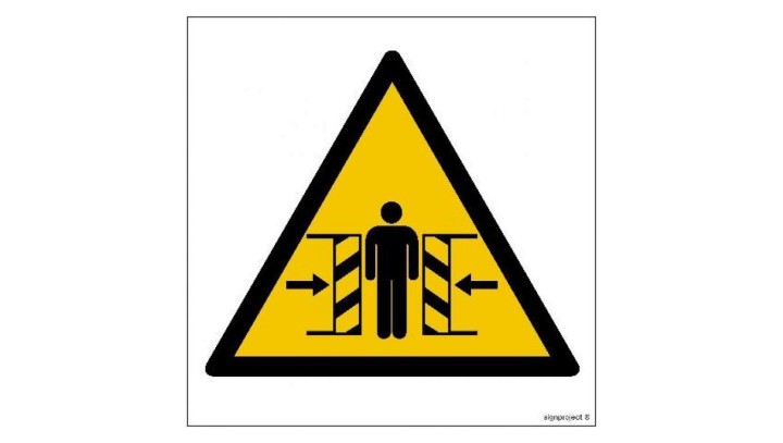 GE005 Ostrzeżenie przed zgnieceniem bocznym 50 x 50 cm FN - Folia samoprzylepna
