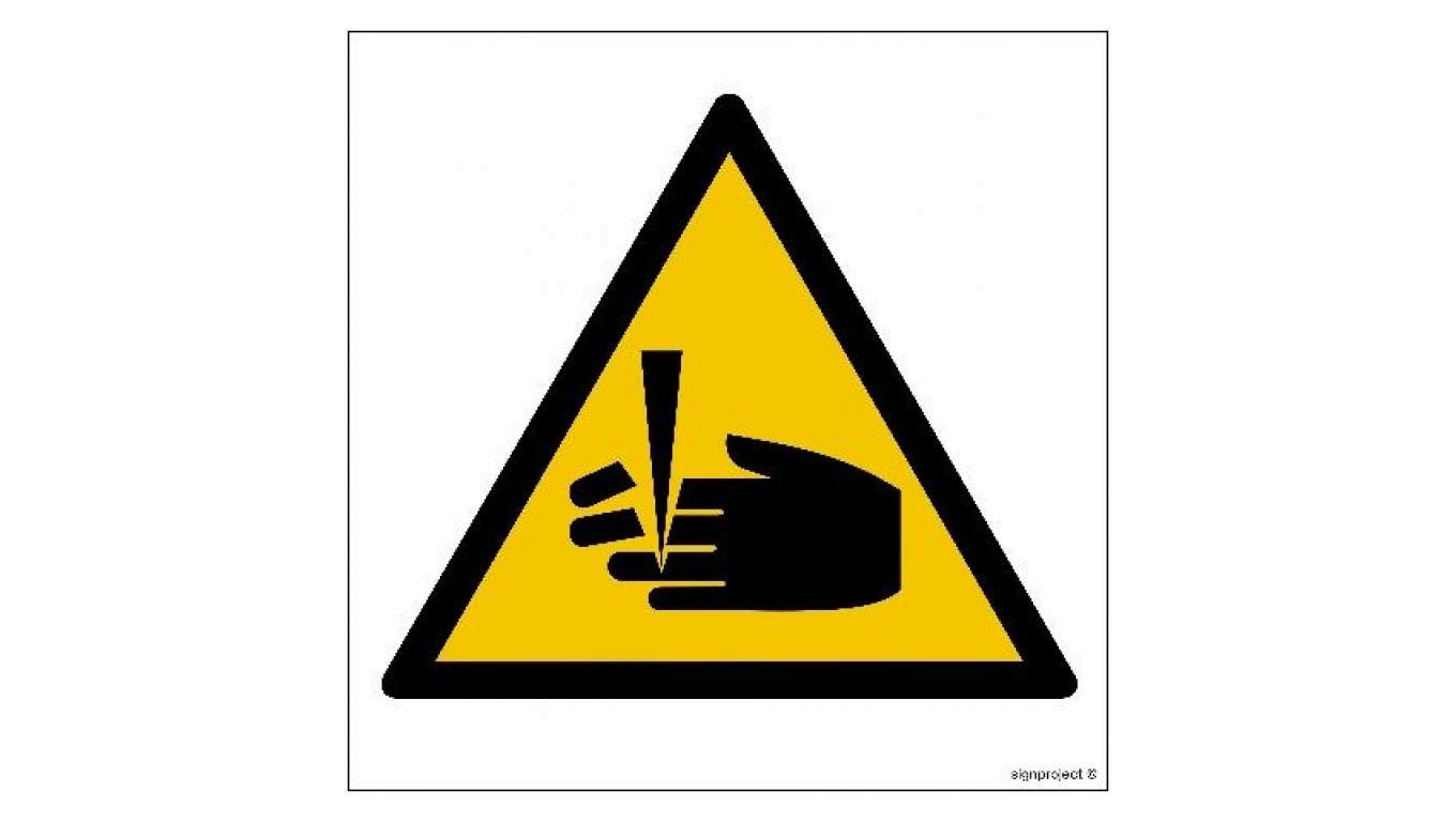 GE007 Ostrzeżenie przed niebezpieczeństwem obcięcia palców 50 x 50 cm PN - Płyta 1mm