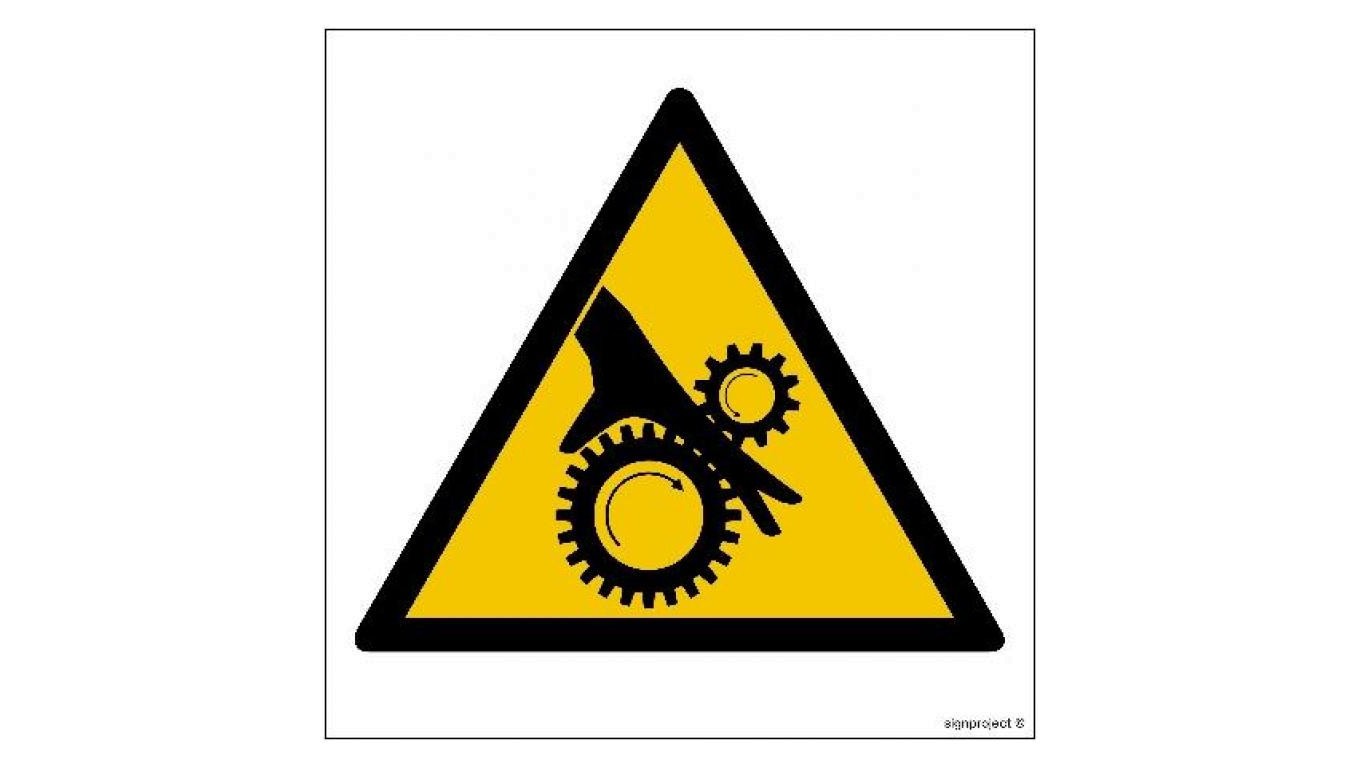 GE016 Uwaga wirujące elementy - arkusz 12 naklejek 5 x 5 cm FN - Folia samoprzylepna