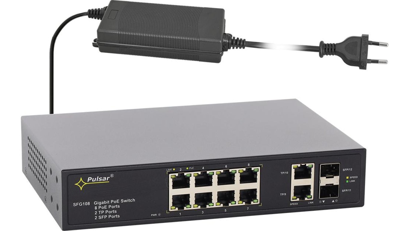 Gigabitowy switch PoE+ 12-portowy SFG108-90W do 8 kamer IP