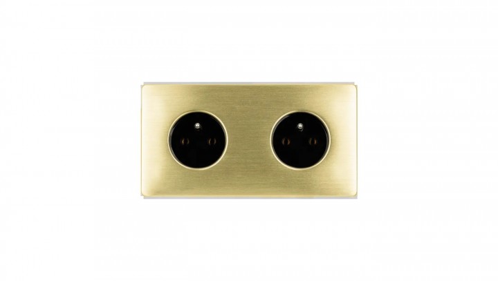 Gniazdko elektryczne czarne podwójne ramka stal szczotkowana PVD Brass GN-SNPBR02C