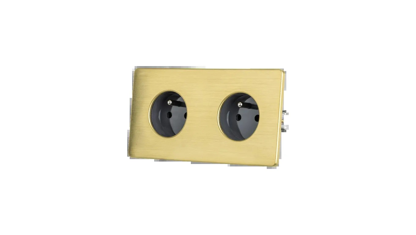 Gniazdko elektryczne szare podwójne ramka stal szczotkowana PVD Brass GN-SNPBR02S