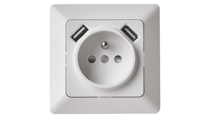 Gniazdo FRENCH z USB 2,1A max. IP20 błyszczące białe EMOS A6000.0