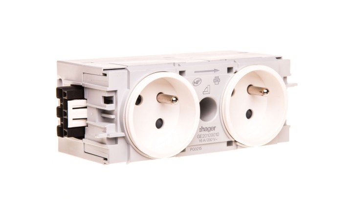 Gniazdo kanałowe podwójne 16A 2P+Z wtyk zacisk C-Profil białe GE20109010