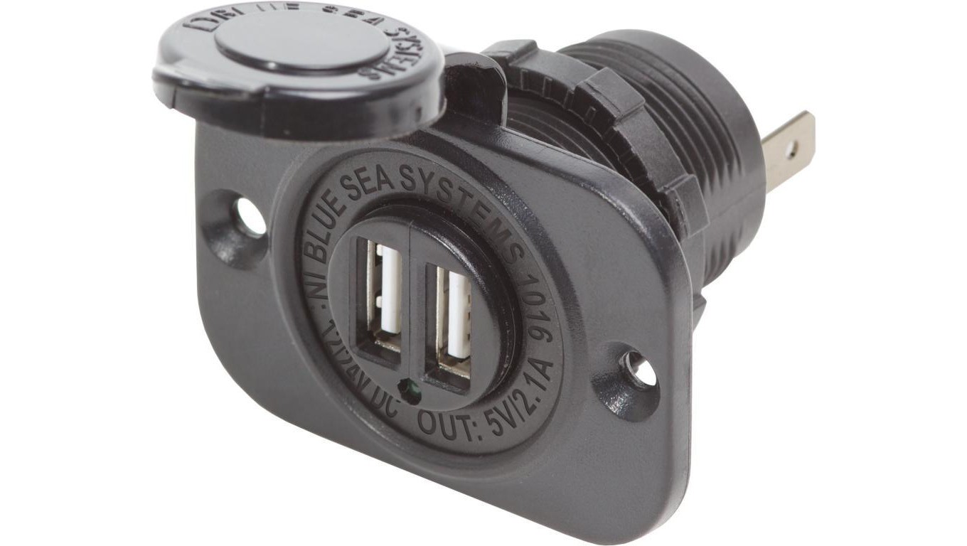 Gniazdo ładowania Blue Sea 12/24V z podwójnym portem USB 2,1 A
