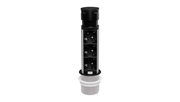 Gniazdo meblowe do zabudowy 3 złącza wtyczkowe 2xUSB A schuko GMZ/S-5 W-72013