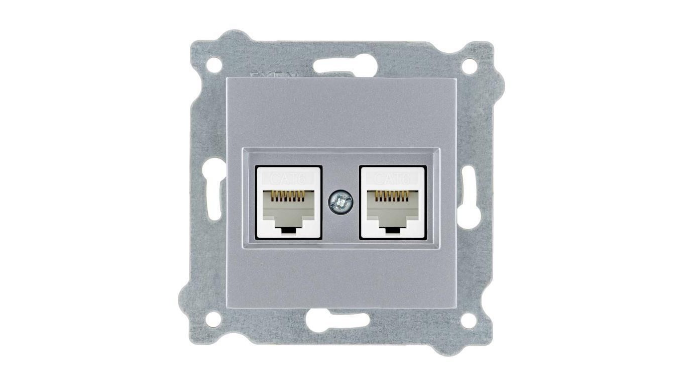 Gniazdo podwójne komputerowe kat.6 Srebrny 254/10E EXEN