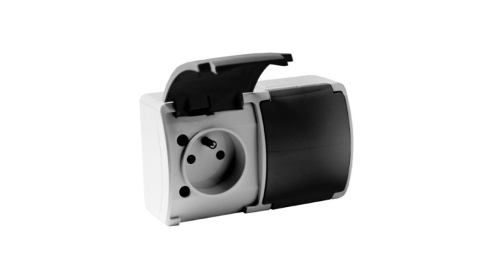 Gniazdo podwójne z uziemieniem natynkowe IP44 popiel/grafit 162-08 DV 8172