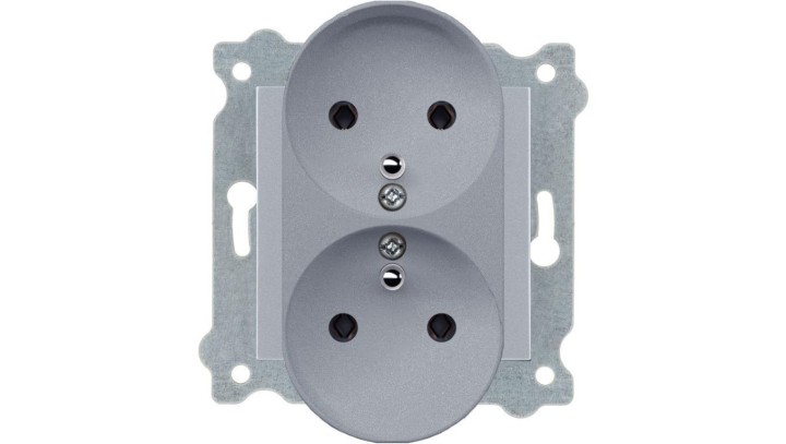 Gniazdo podwójne z uziemieniem (Typ E) Srebrny 246/10E EXEN