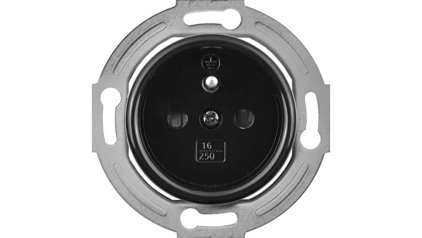 Gniazdo pojedyncze 2P+Z Retro 16A-250V~, zaciski śrubowe, czarne